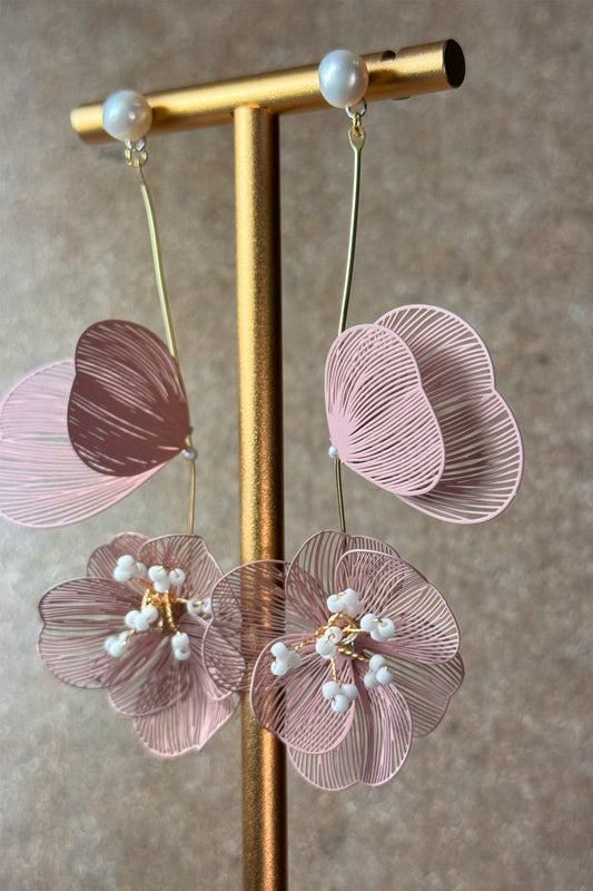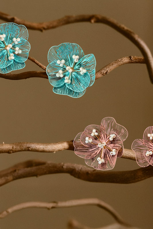 Auténtica joyería artesanal de pendientes y anillos con motivos florales para mujeres....