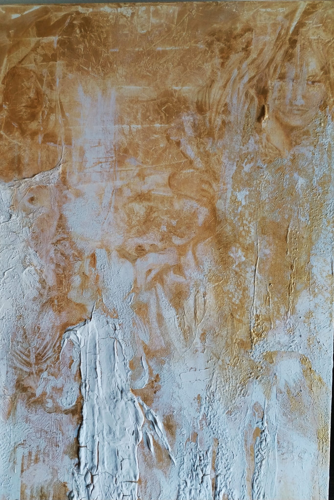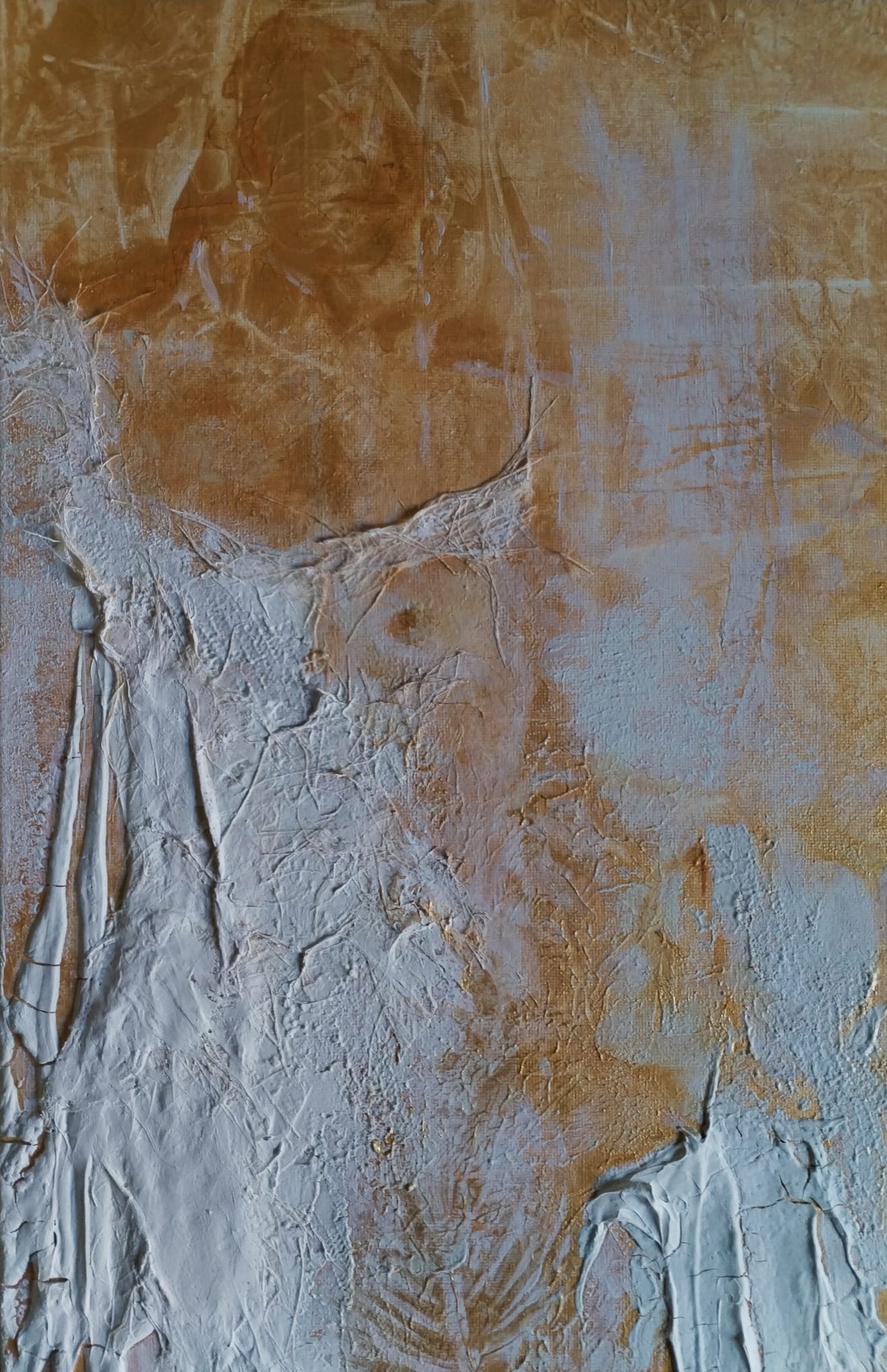 A través de la textura, el relieve y los contrastes entre blanco y dorado, la obra expresa la belleza compartida y la igualdad silenciosa que nace desde lo más profundo.